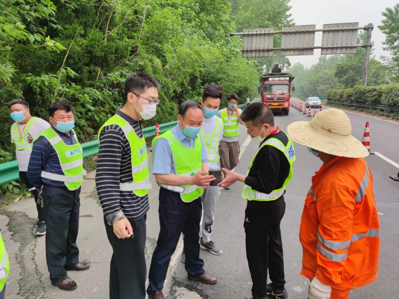 5月7日下午,安徽省交控集團(tuán)養(yǎng)護(hù)管理中心主任張尤平、養(yǎng)管分中心副主任陶明路、分管安全工程師舒陽(yáng)一行到2019-2021年度高速公路銑刨修復(fù)工程施工現(xiàn)場(chǎng)檢查指導(dǎo)工作。