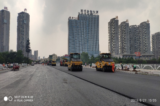 我公司承擔(dān)的六安市龍河路橋工程瀝青路面經(jīng)過一天兩夜的艱苦奮戰(zhàn),于6月28日完成主橋面瀝青攤鋪工程,為7月1日順利通車奠定了基礎(chǔ)。