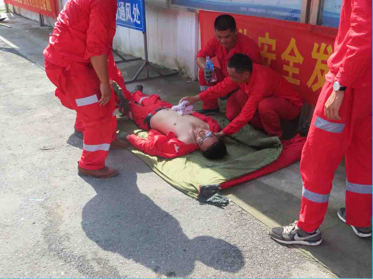 今年是全國第15個(gè)“安全生產(chǎn)月”,為提高公司職工對中暑人員癥狀的正確辨別,以及能進(jìn)行科學(xué)處置和搶救,達(dá)到及時(shí)搶救中暑人員,最大限度地減少事故損失,避免安全事故發(fā)生。我公司于6月29日下午15時(shí)20分在六安西拌和廠組織進(jìn)行了高溫中暑應(yīng)急演練,本次演練在公司專職安全生產(chǎn)負(fù)責(zé)人儲(chǔ)總的領(lǐng)導(dǎo)下,由安全部牽頭,工程部、設(shè)備部和拌和廠參與。